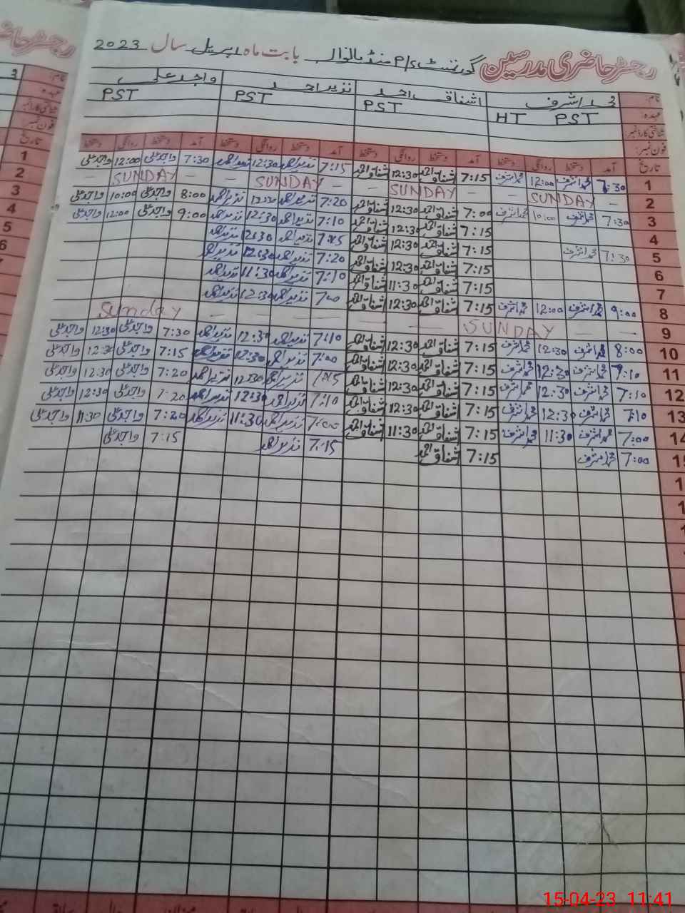 | CNIC | Full Name | Designation | R/C | Absence During Last Calender Month |