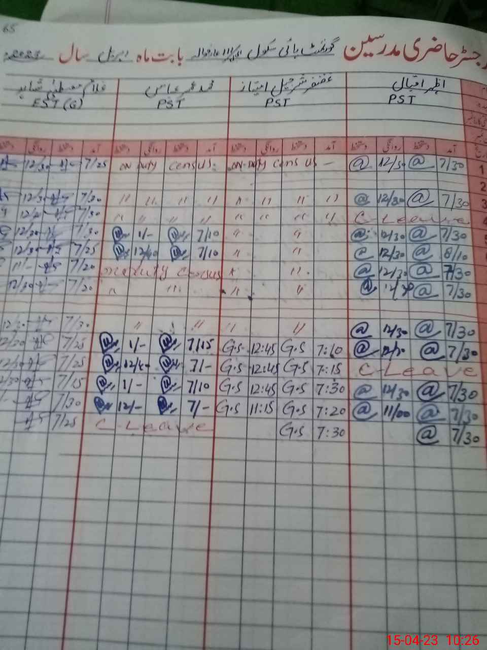 | 36**** | Sa**** Ah**** | Regular | 0 | 4 | 0 | 0 | 0 | 0 | 0 | 0 | 0 | Exam Duty | |