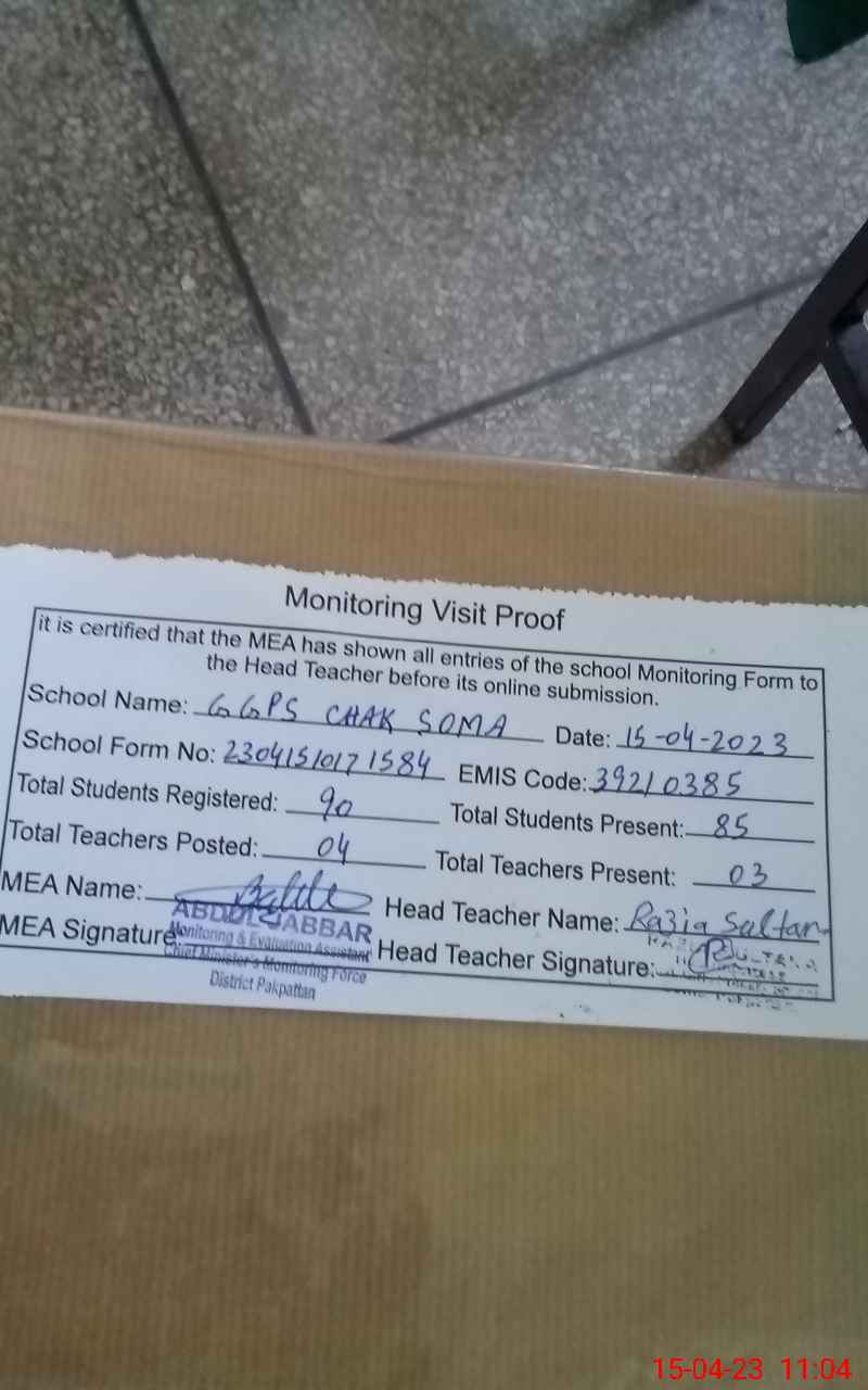 | EMIS Code: 39210385 | Name of School: GGPS CHAK SOMA | |||