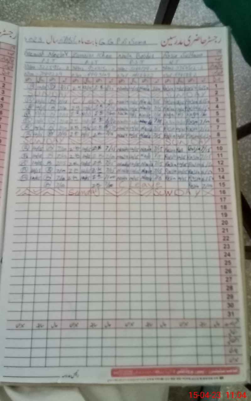 | Name: Zu**** Kh**** Designation: (School Headmaster's/Headmistress's) PST Phone/Cell Number: 03**** |