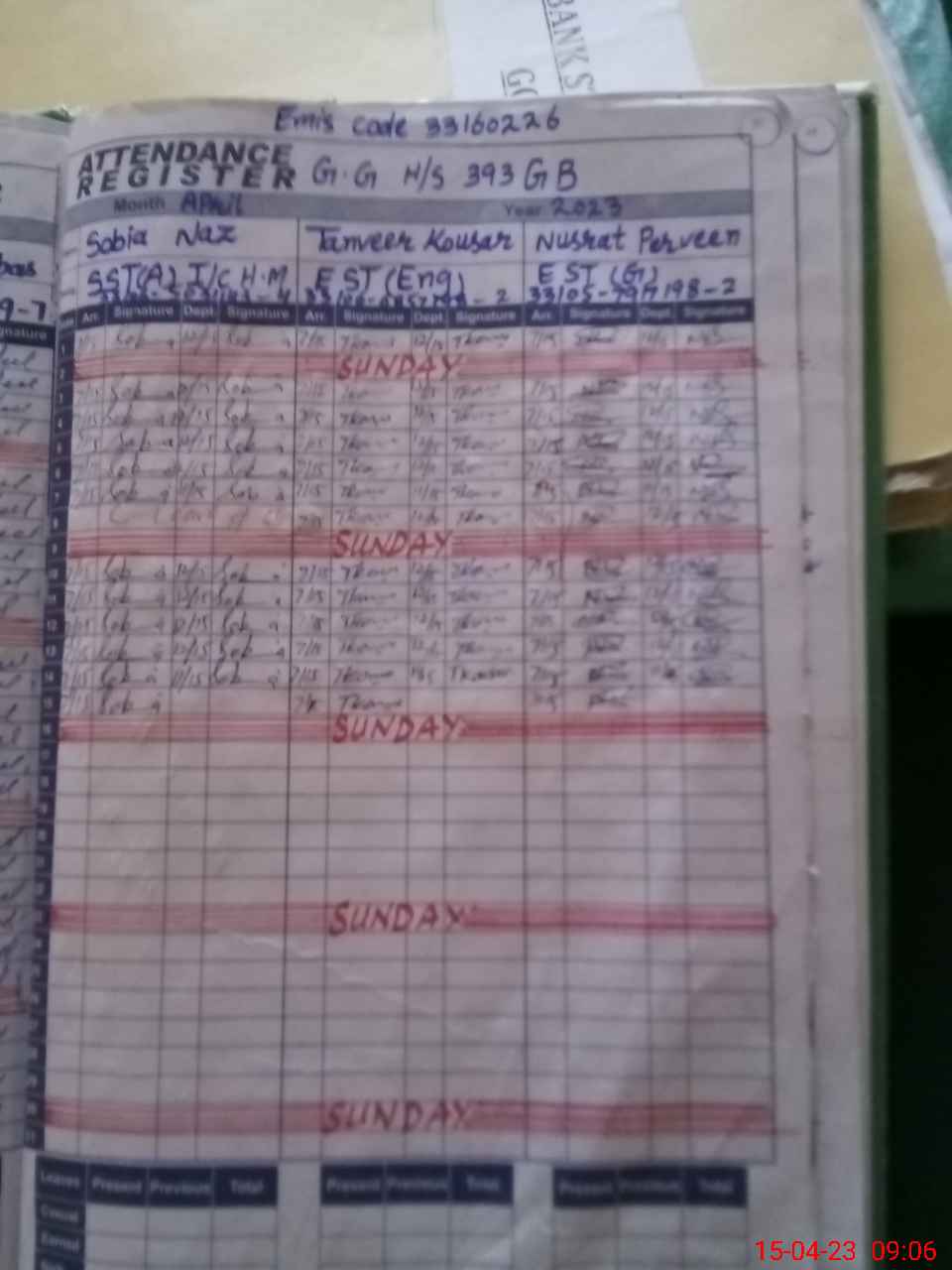 | EMIS Code: 33160226 | Name of School: GGHS CHAK 393 GB TANDLIANWALA | |||