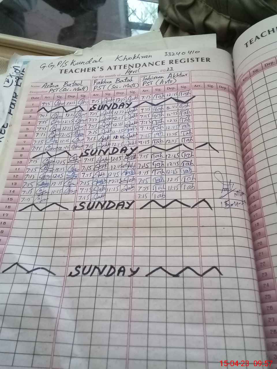 | Name: AS**** BA**** Designation: (School Headmaster's/Headmistress's) PST SC Phone/Cell Number: 03**** |