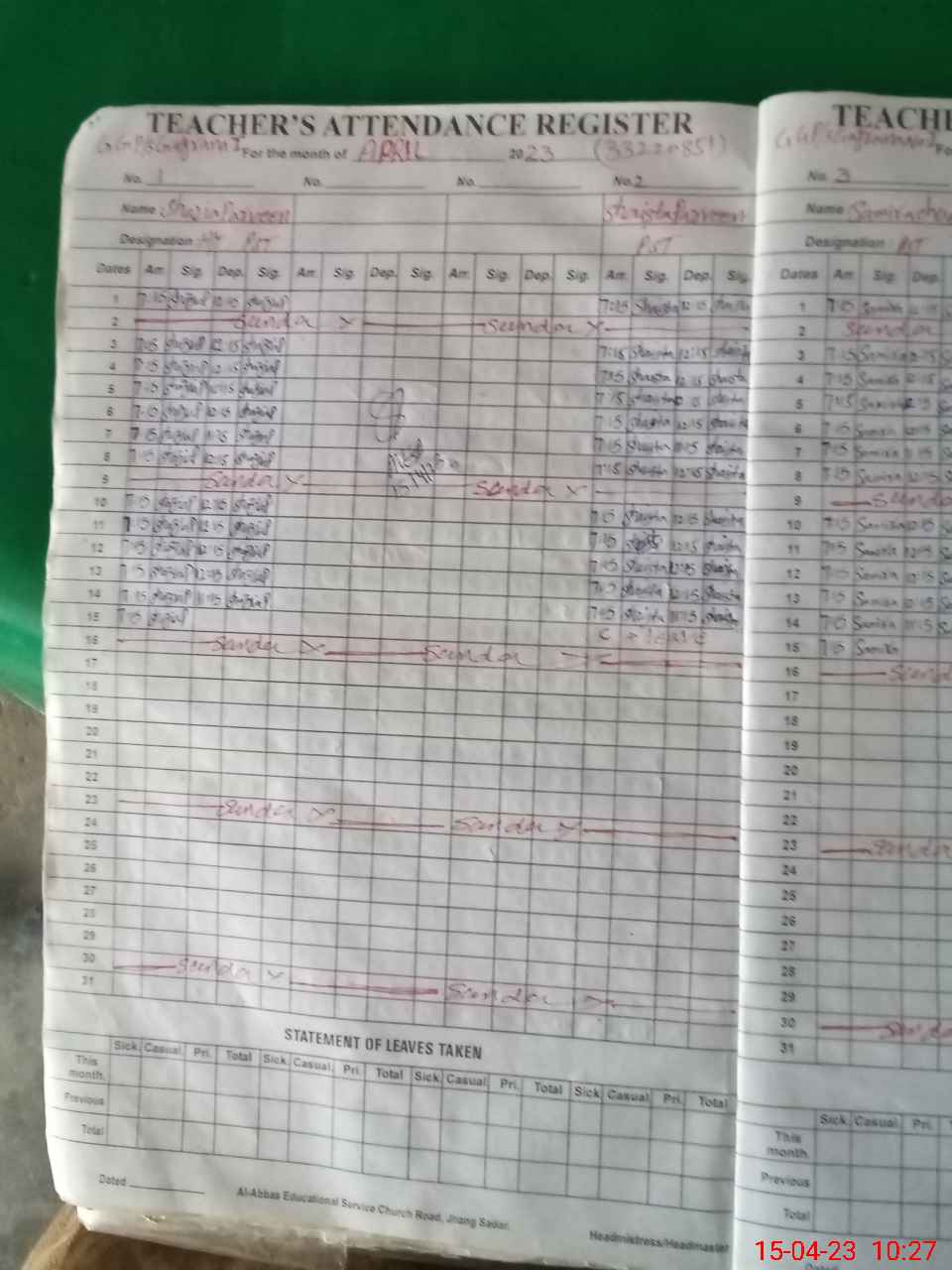 | 35**** | Sa**** Na**** | PST | Regular | 0 | 0 | 0 | 0 | 0 | 0 | 0 | 0 | 0 | Maternity |