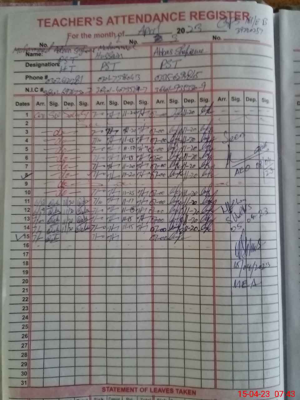 | Name: MU**** AD**** Designation: (School Headmaster's/Headmistress's) PST Phone/Cell Number: 03**** |