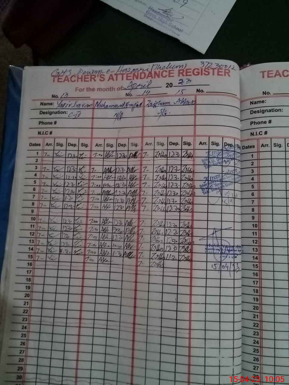 | Name: Mu**** Za**** Designation: (School Headmaster's/Headmistress's) HEADMASTER Phone/Cell Number: 03**** |