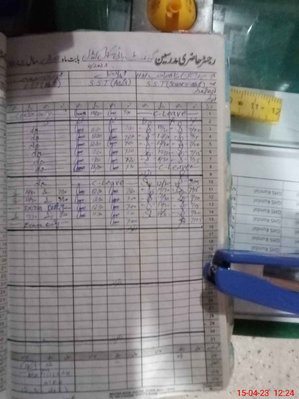 | 34**** | Za**** UrRe**** | PST | Regular | 0 | 0 | 0 | 0 | 0 | 0 | 0 | 0 | 0 | Exam Duty |