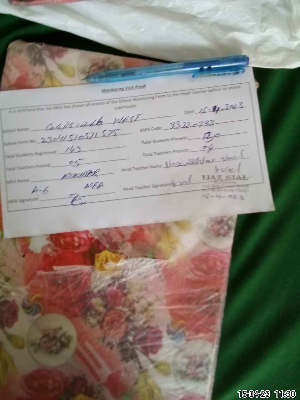 | EMIS Code: 33220733 | Name of School: GGPS CHAK NO 266 WEST | |||