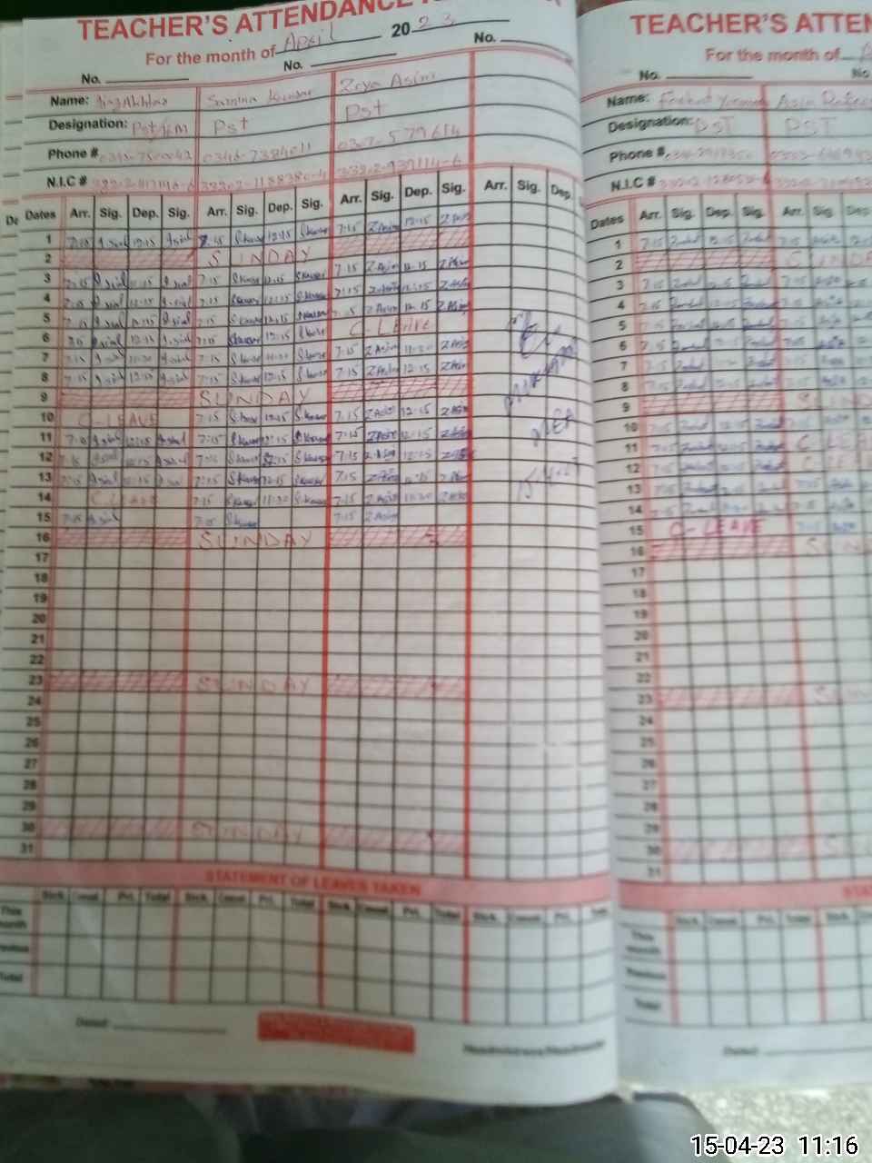 | Name: IJ**** AK**** Designation: (School Headmaster's/Headmistress's) PST Phone/Cell Number: 03**** |