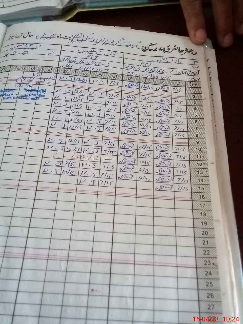 | CNIC | Full Name | Designation | R/C | Absence During Last Calender Month |