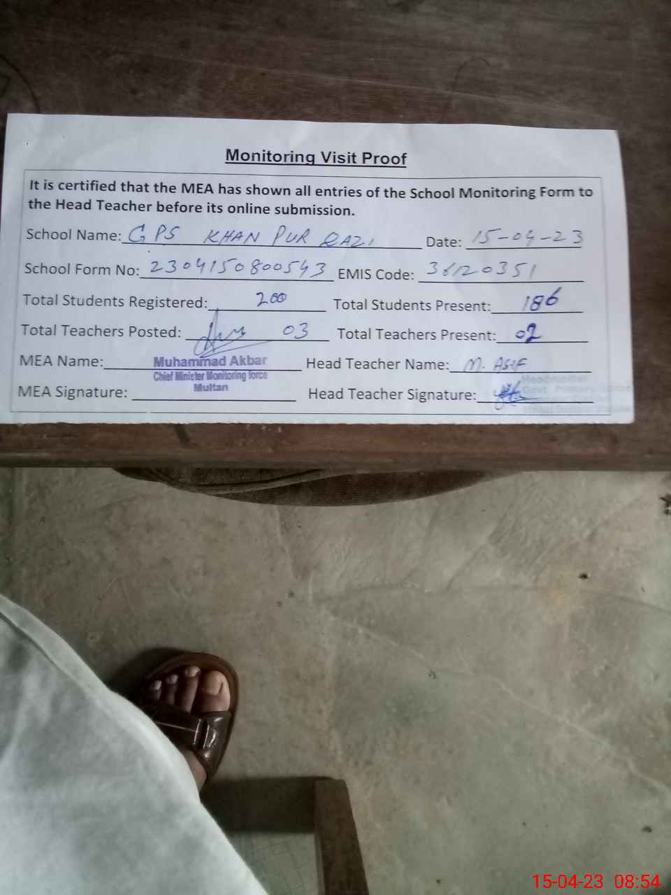 | EMIS Code: 36120351 | Name of School: GPS KHANPUR QAZI | |||