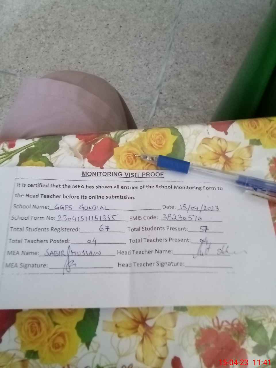 | EMIS Code: 38230570 | Name of School: GGPS GUNJIAL | |||