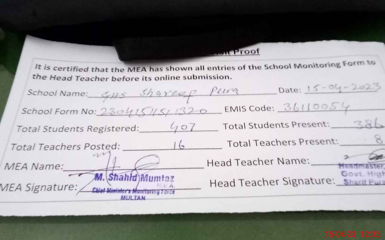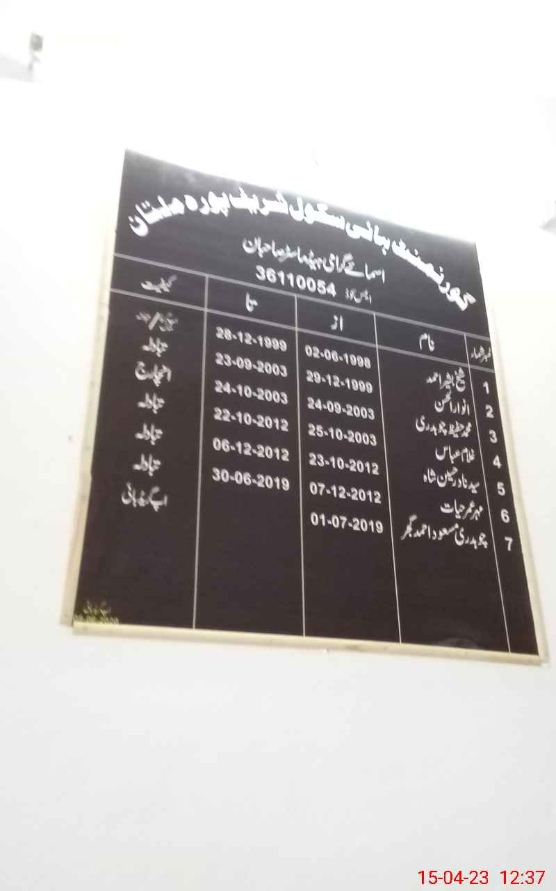 | EMIS Code: 36110054 | Name of School: GHS SHARIF PURA BAIWA COLONY MULTAN | |||