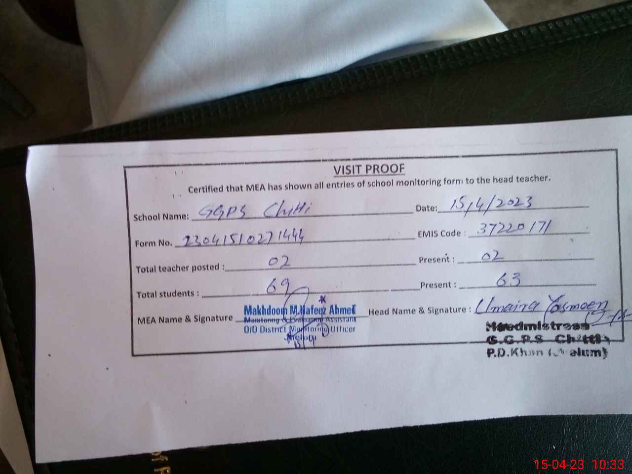 | EMIS Code: 37220171 | Name of School: GGPS CHITTI | |||