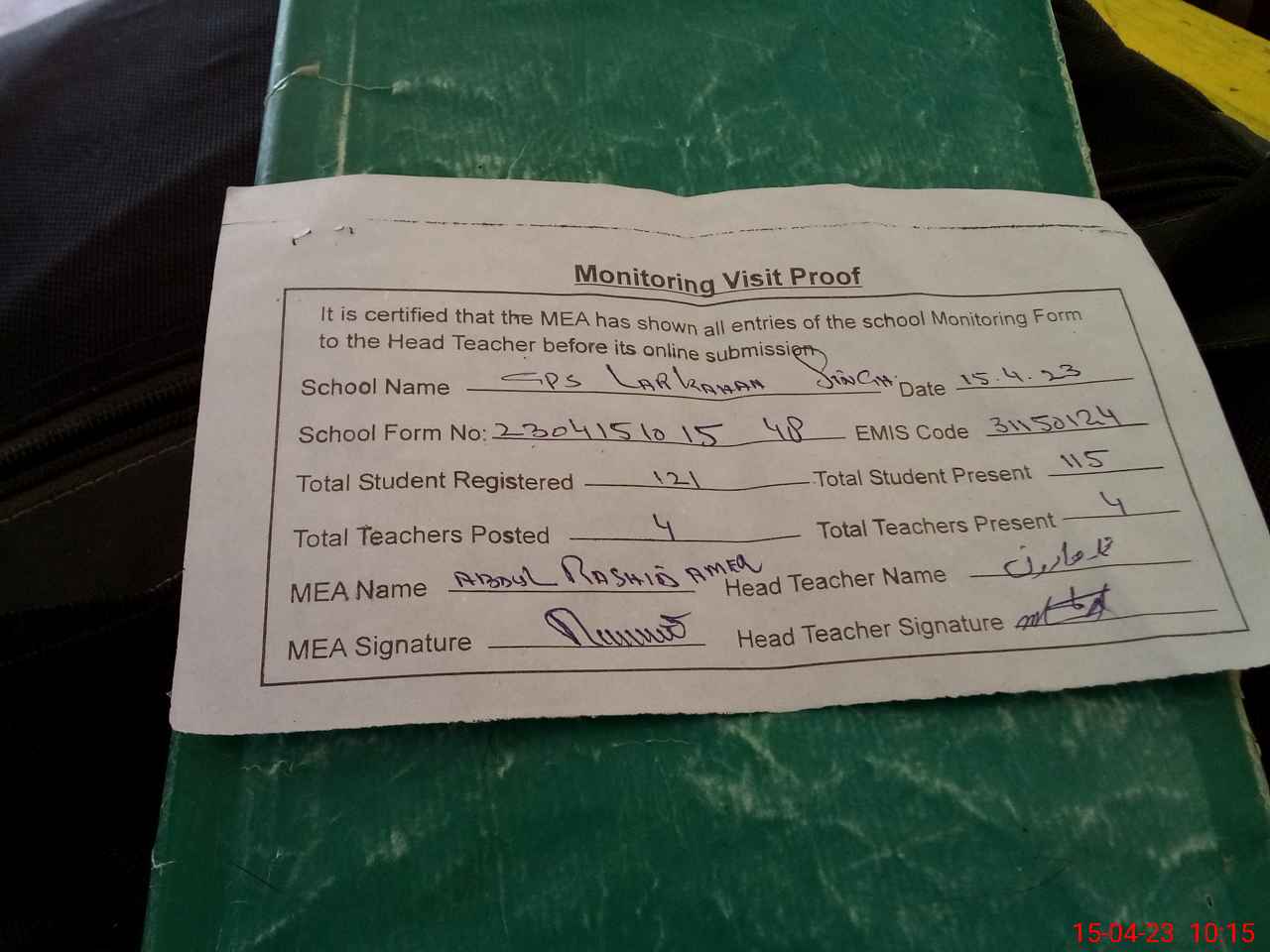 | EMIS Code: 31150124 | Name of School: GPS LARKAHAN SINGH | |||