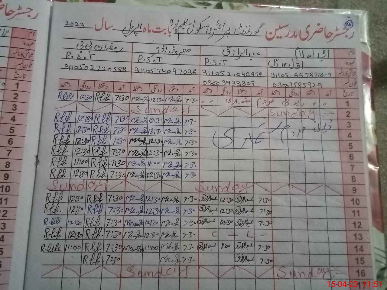 | Name: Ab**** Ra**** Designation: (School Headmaster's/Headmistress's) PST Phone/Cell Number: 03**** |