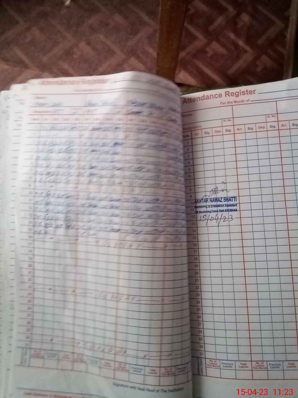 | Attendance Register | Head Teacher | MEA with School | Visit Proof |