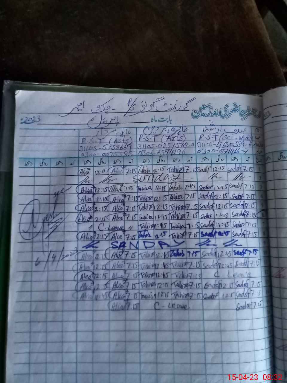 | Name: SA**** AR**** Designation: (School Headmaster's/Headmistress's) PST Phone/Cell Number: 03**** |