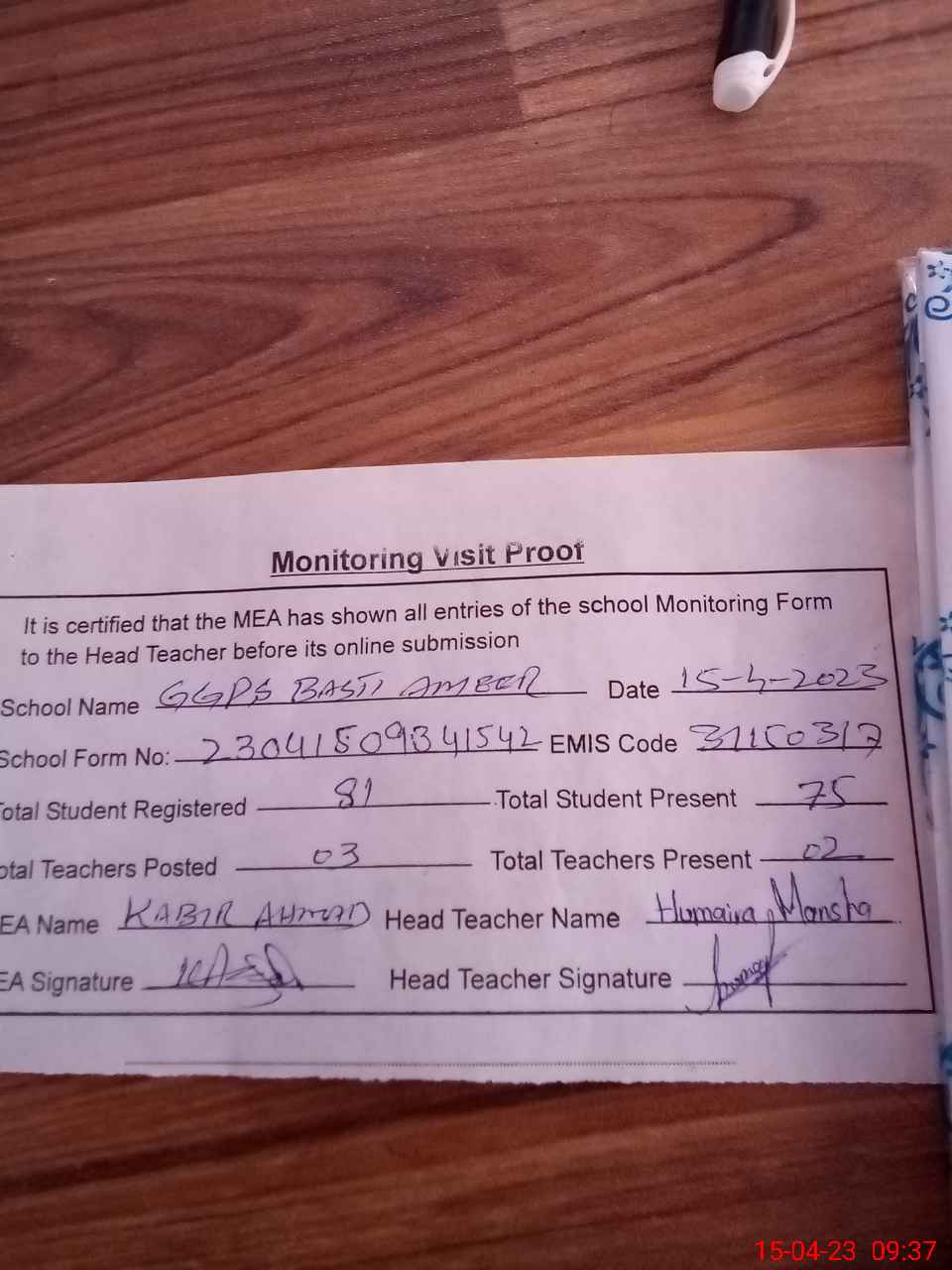 | EMIS Code: 31150317 | Name of School: GGPS BASTI AMIR | |||
