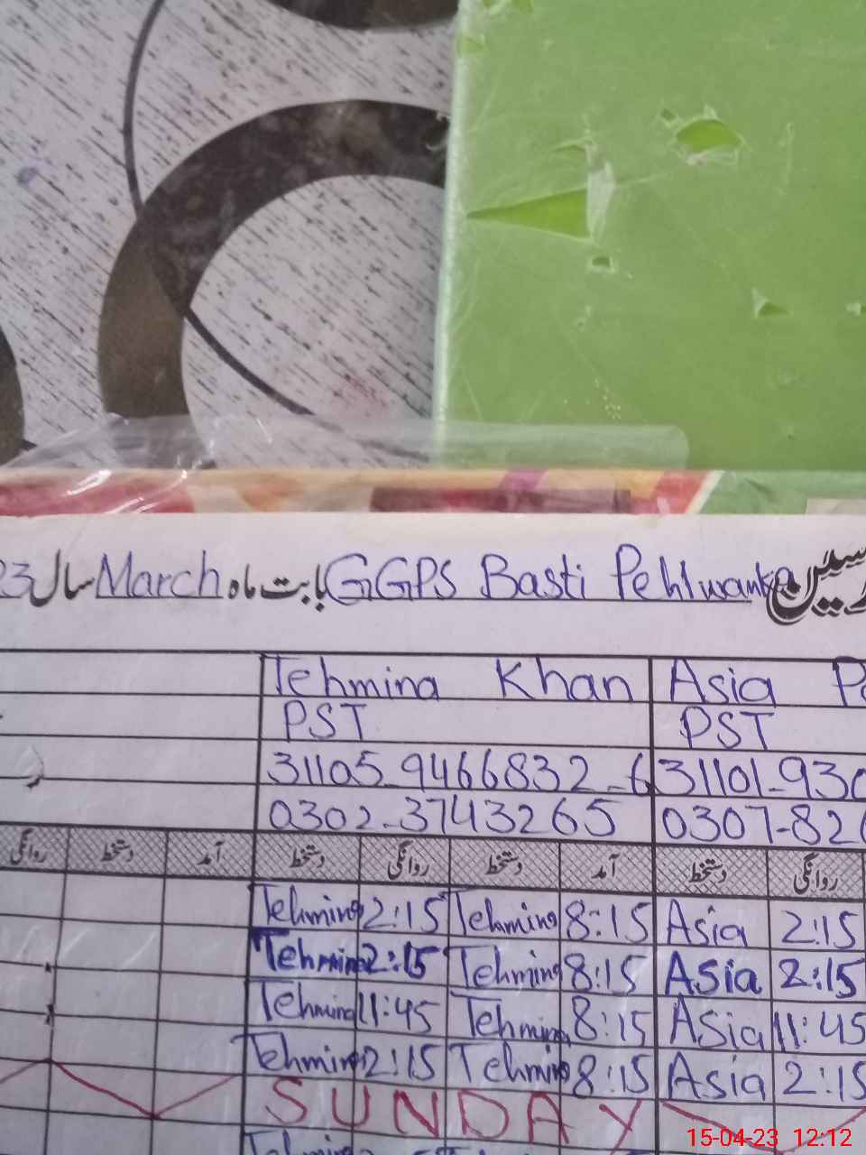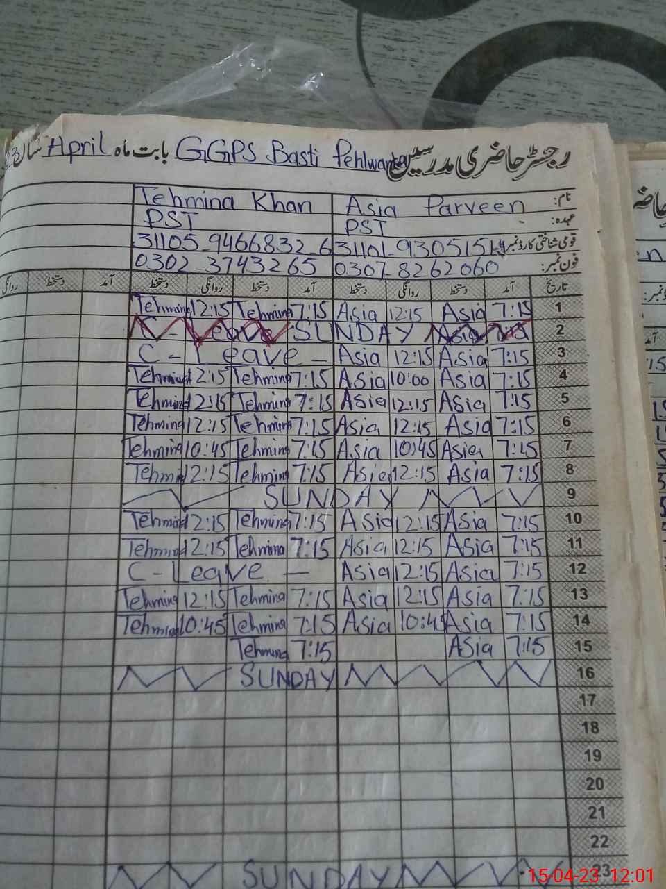| Name: As**** Pa**** Designation: (School Headmaster's/Headmistress's) PST Phone/Cell Number: 03**** |