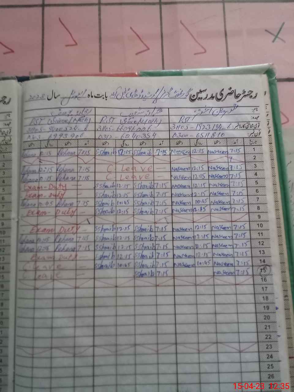 | Name: Sh**** Sh**** Designation: (School Headmaster's/Headmistress's) PST Phone/Cell Number: 03**** |