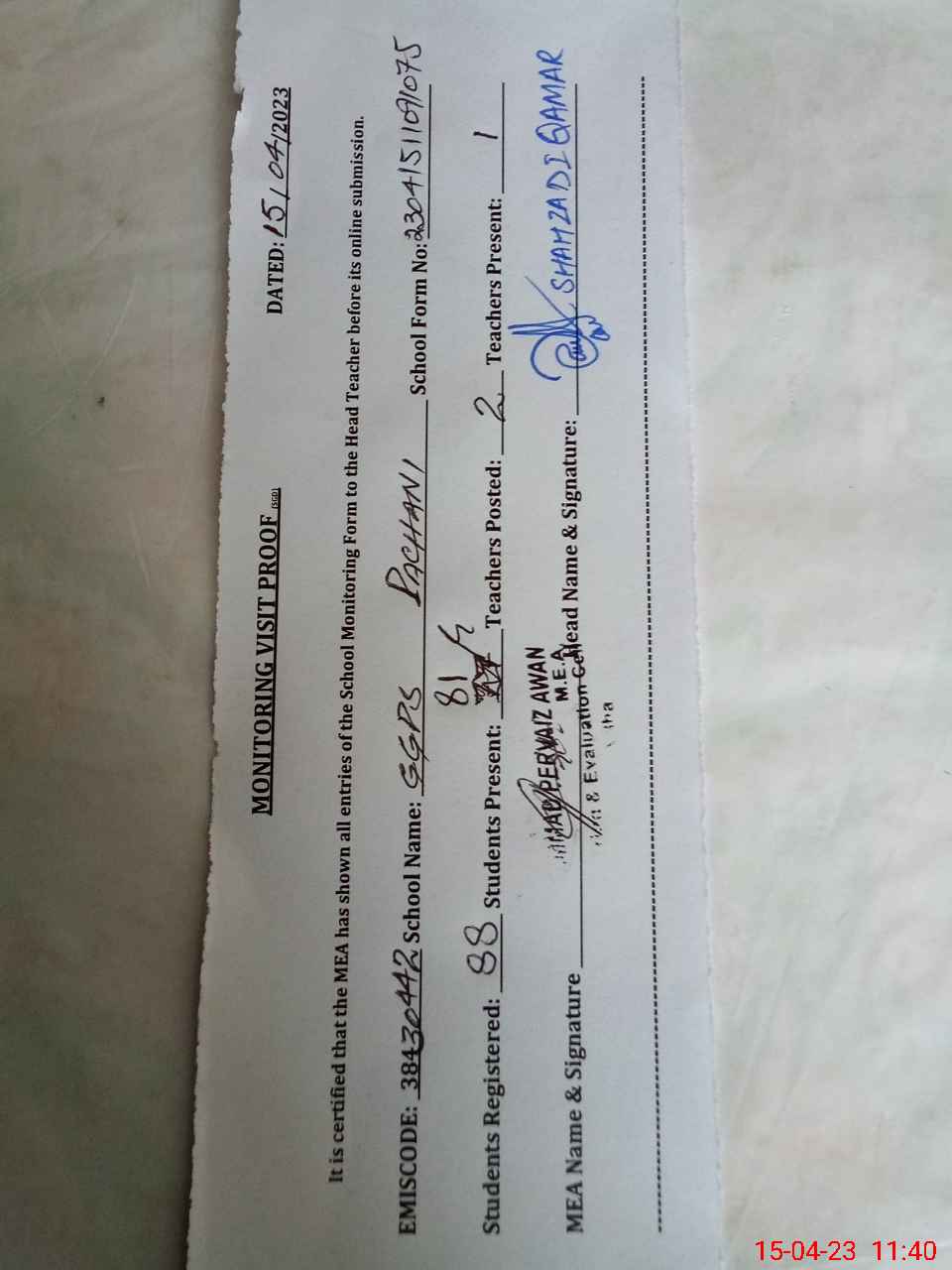 | EMIS Code: 38430442 | Name of School: GGPS PACHANI | |||