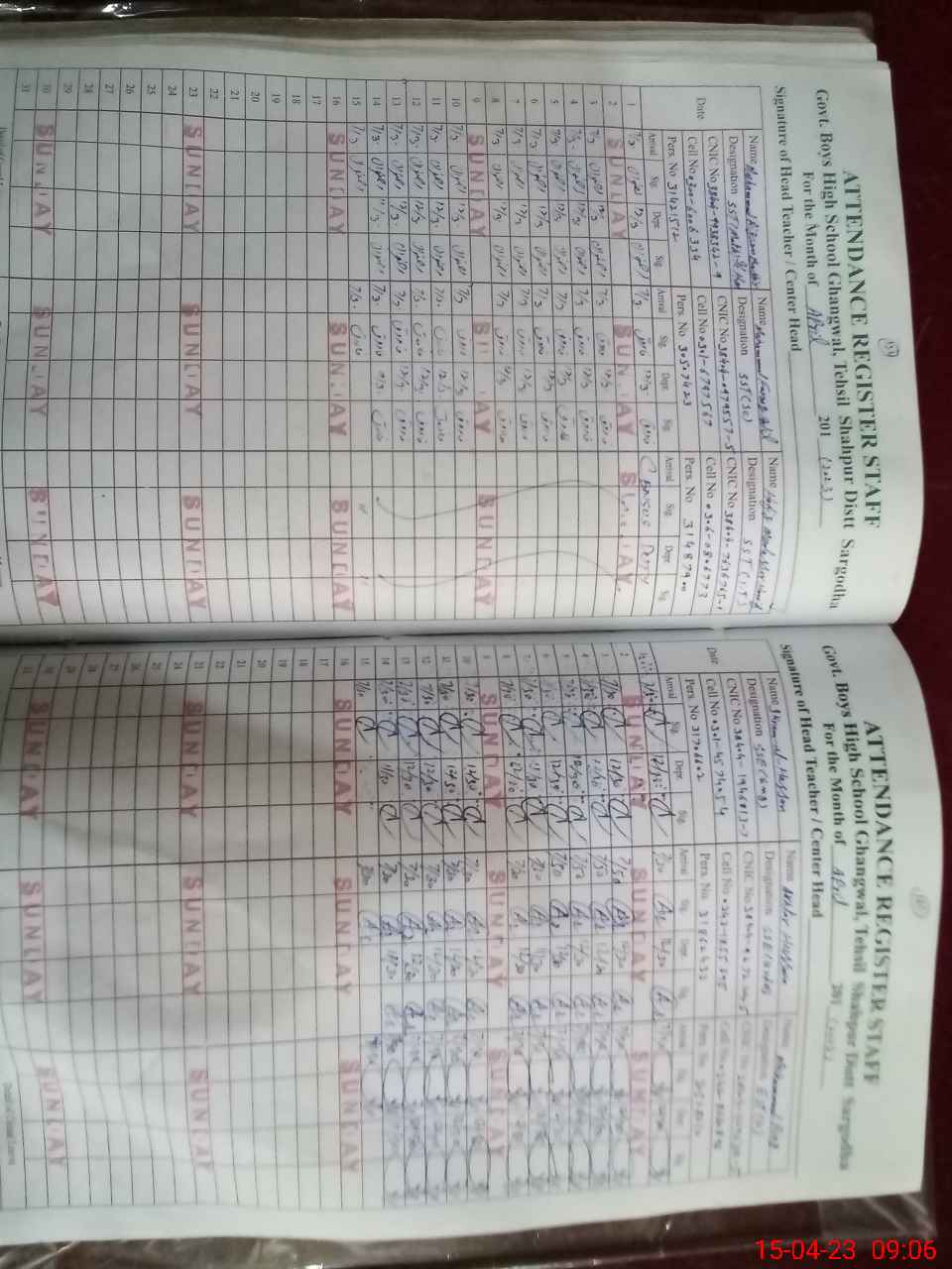 | CNIC | Full Name | Designation | R/C | Absence During Last Calender Month |