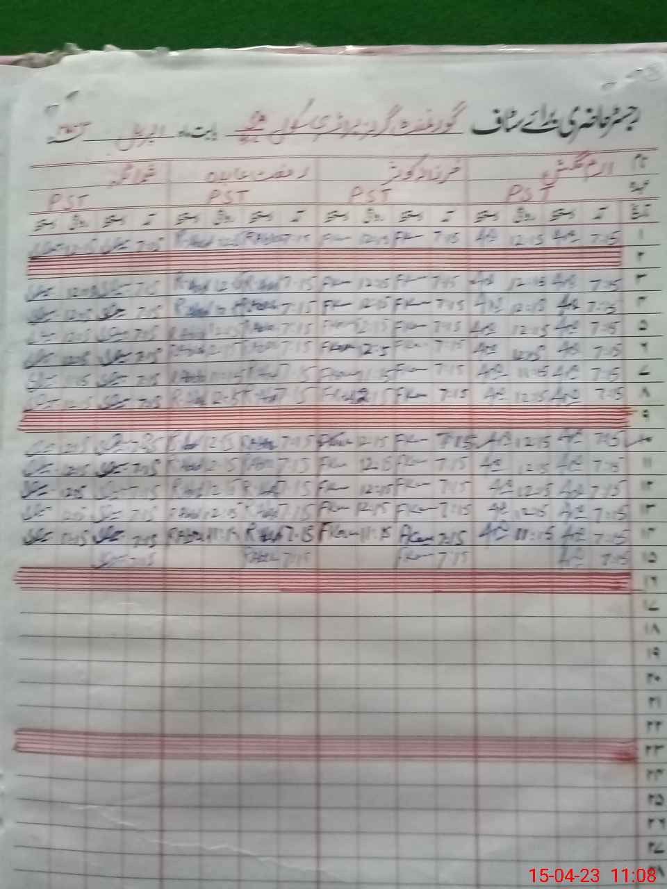 | CNIC | Full Name | Designation | R/C | Absence During Last Calender Month |