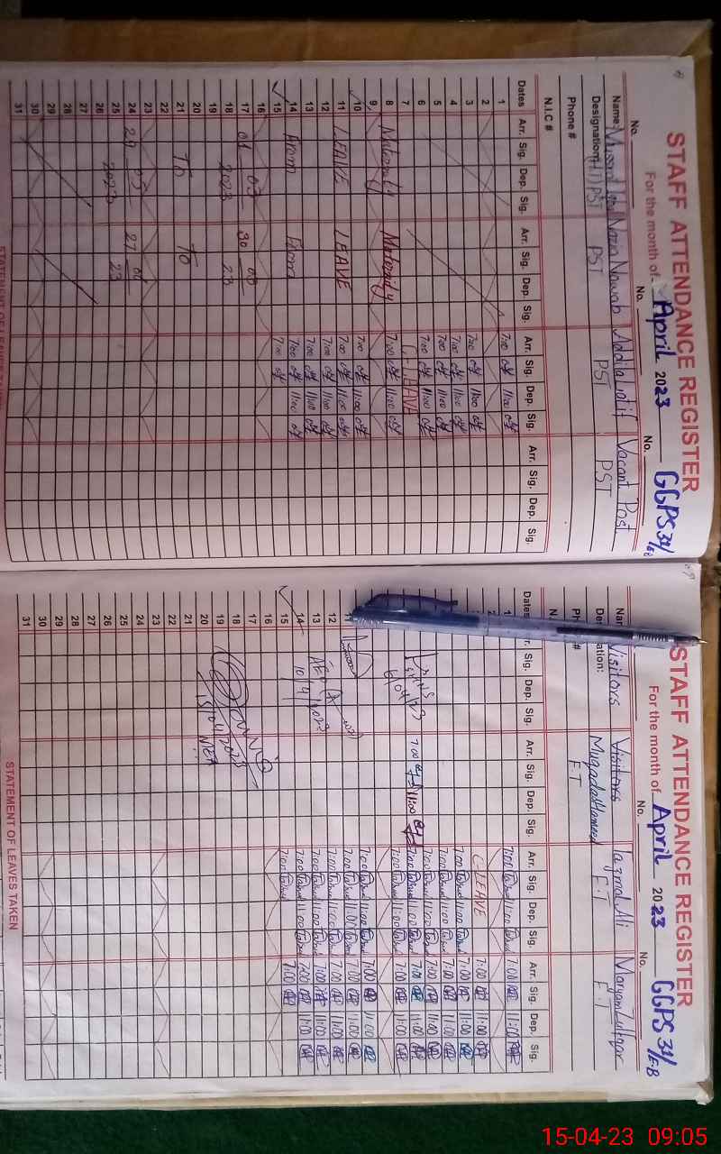| Name: MU**** IQ**** Designation: (School Headmaster's/Headmistress's) PST Phone/Cell Number: 03**** |