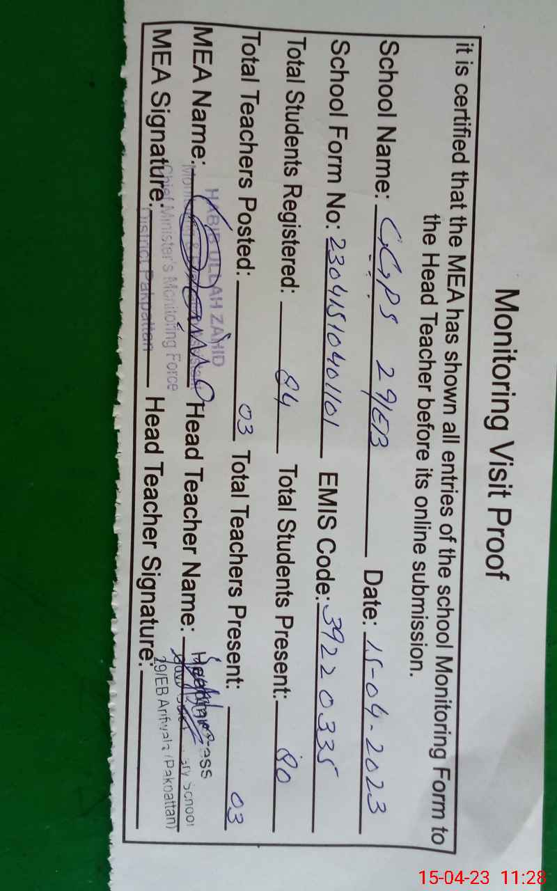 | Attendance Register | Head Teacher | MEA with School | Visit Proof |