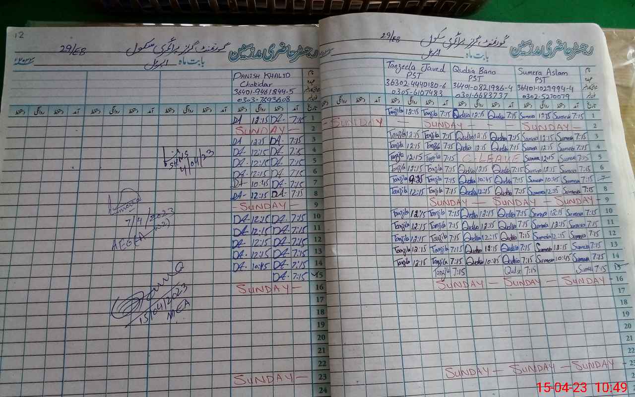 | CNIC | Full Name | Designation | R/C | Absence During Last Calender Month |