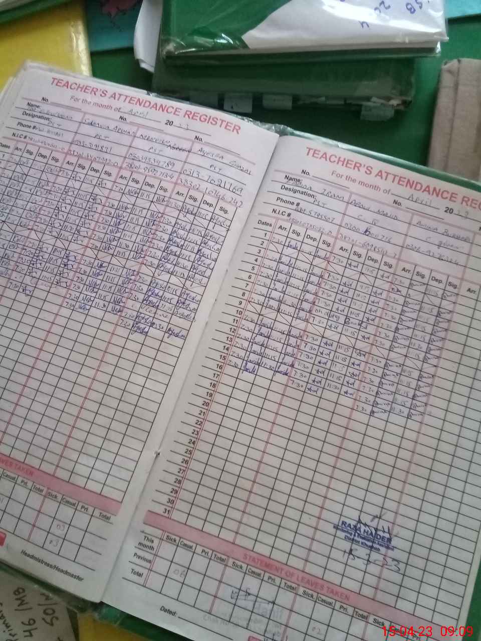 | CNIC | Full Name | Designation | R/C | Absence During Last Calender Month |