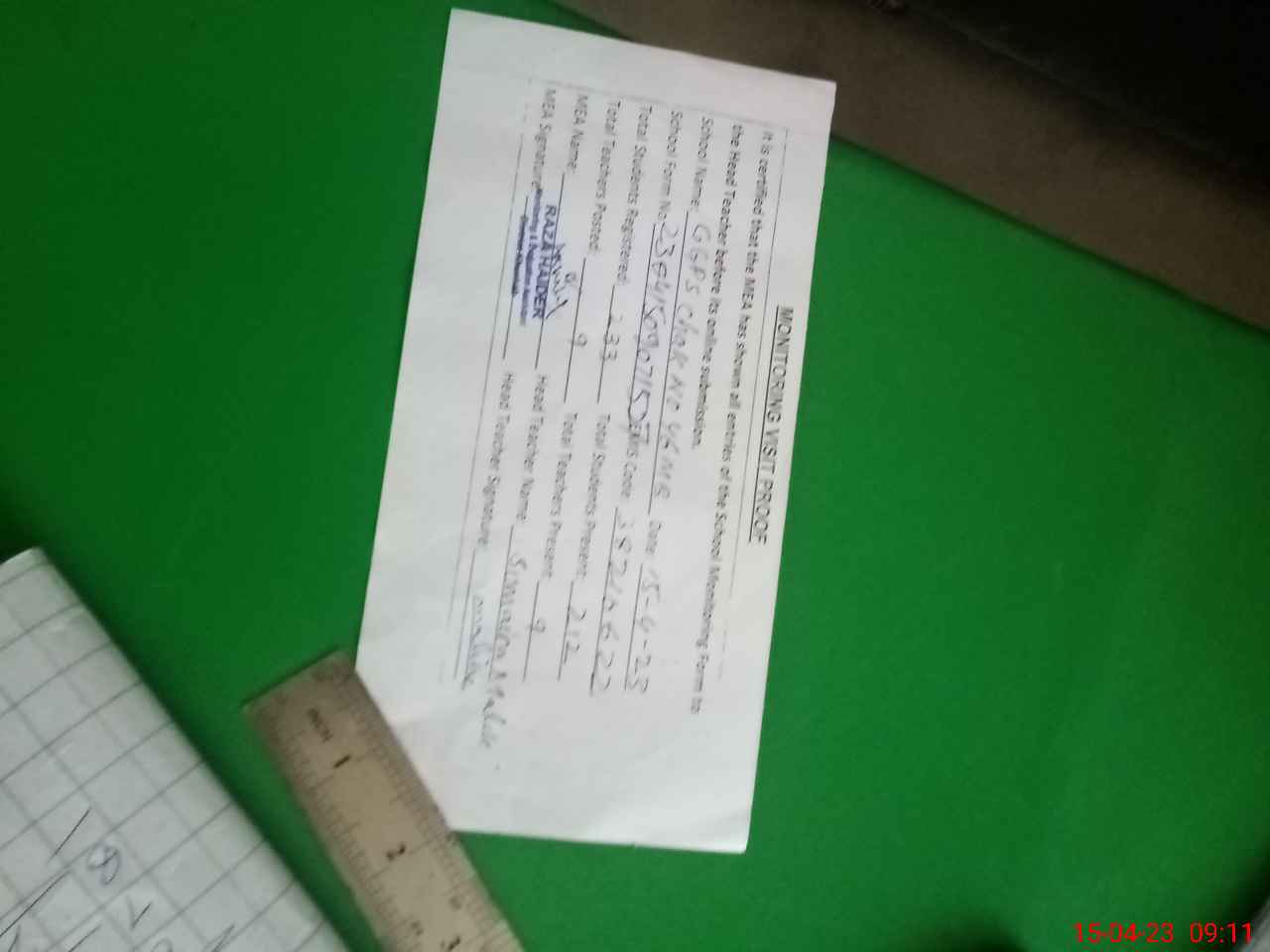 | Attendance Register | Head Teacher | MEA with School | Visit Proof |