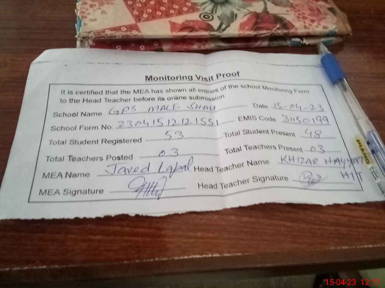 | EMIS Code: 31150199 | Name of School: GPS MALE SHAH | |||