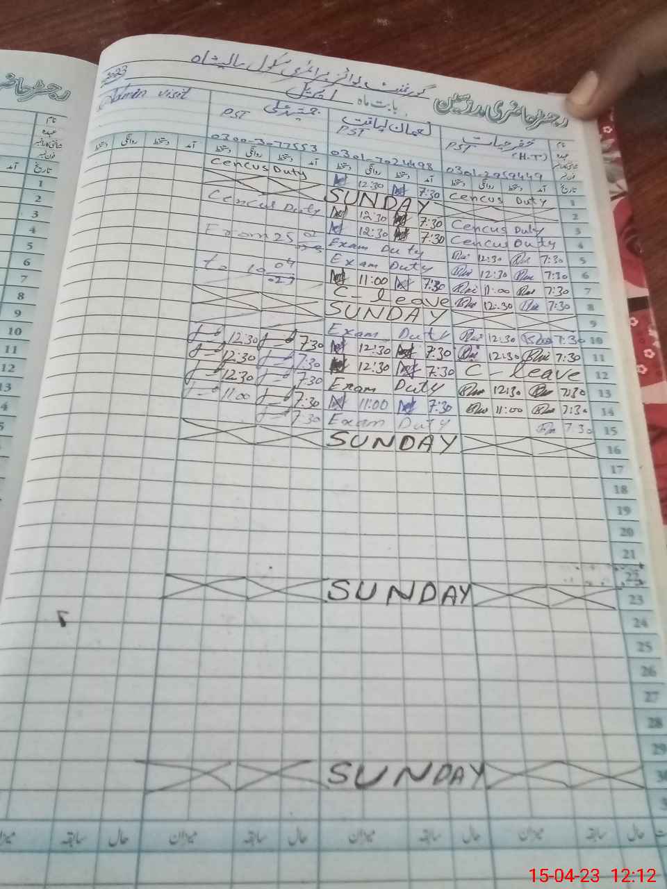 | 31**** | No**** Li**** | PST | Regular | 0 | 0 | 0 | 0 | 0 | 0 | 0 | 0 | 0 | Exam Duty |