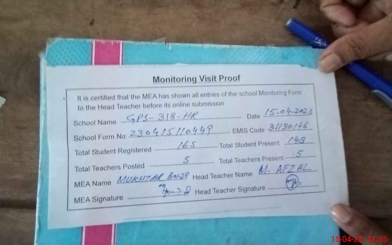 | EMIS Code: 31130146 | Name of School: GPS CHAK 318/HR | |||