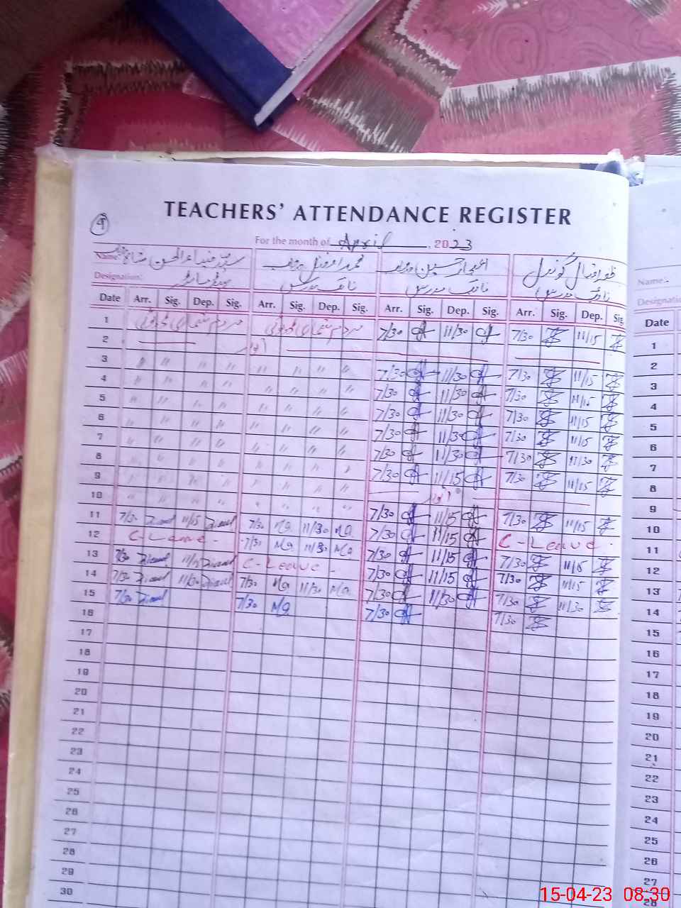 | CNIC | Full Name | Designation | R/C | Absence During Last Calender Month |