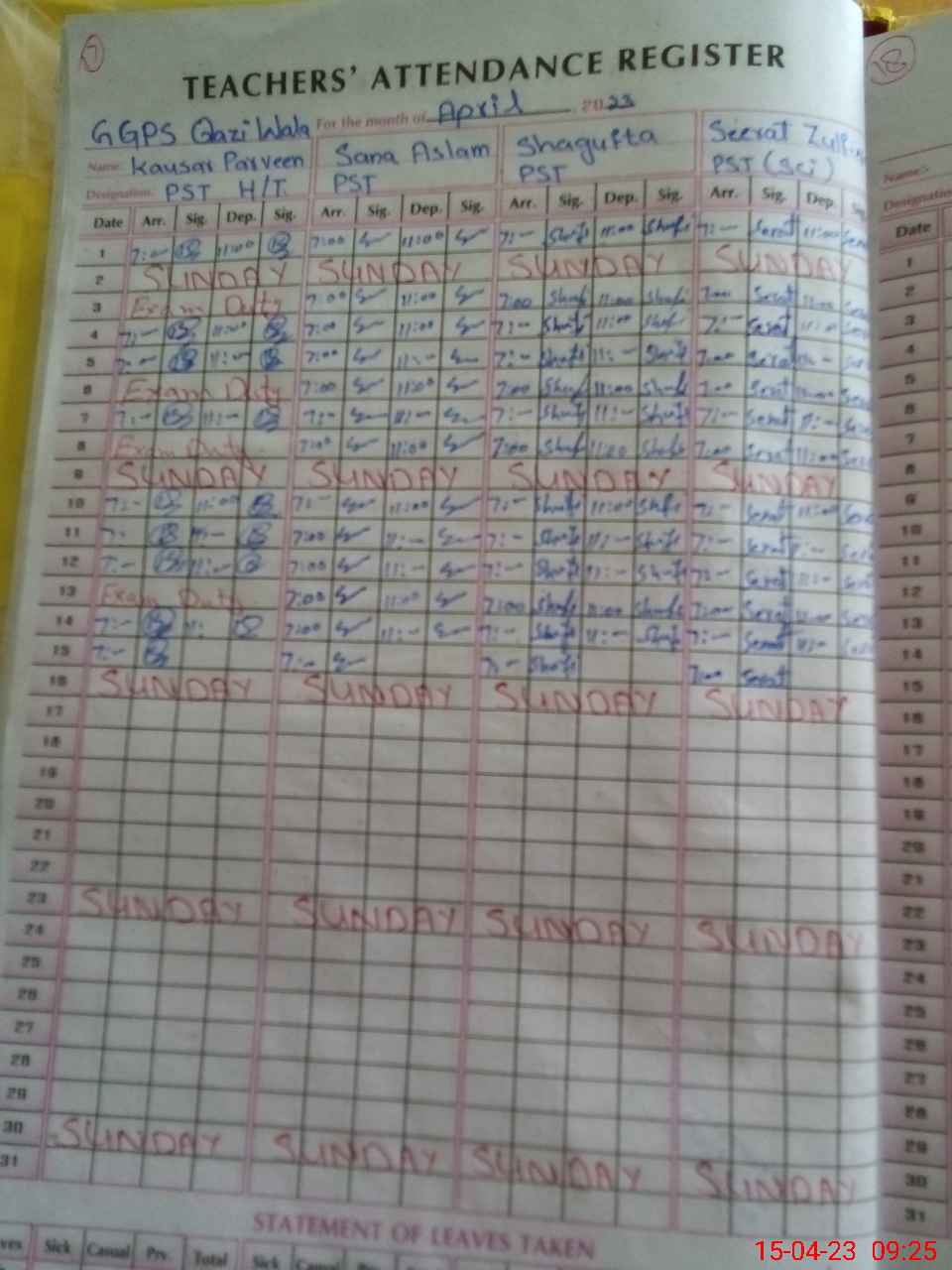 | Leave | Duty | Absent | Maternity | Medical | Ex- Pak |