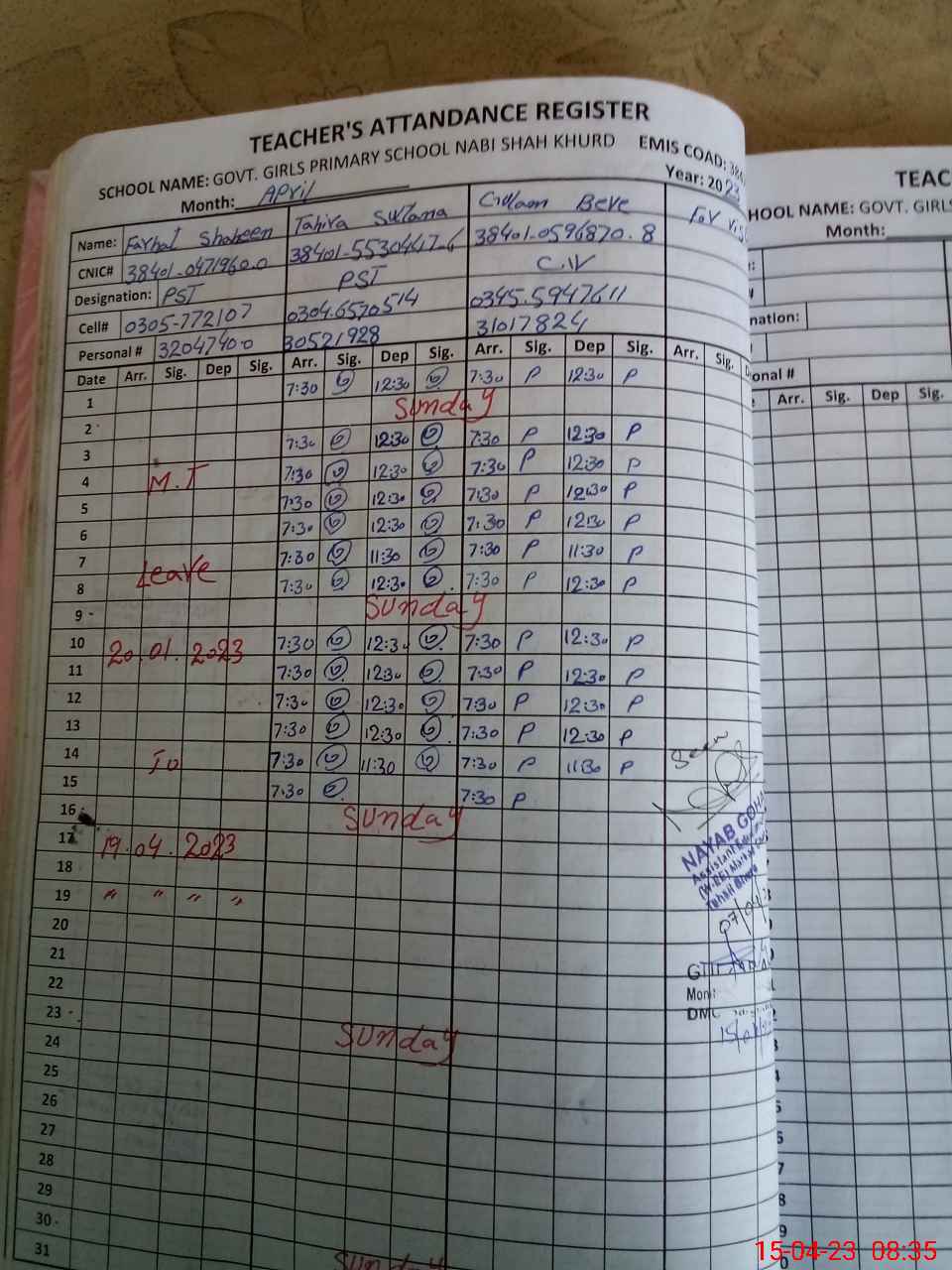 | Name: FA**** SH**** Designation: (School Headmaster's/Headmistress's) PST(SC-MATH) Phone/Cell Number: 03**** |
