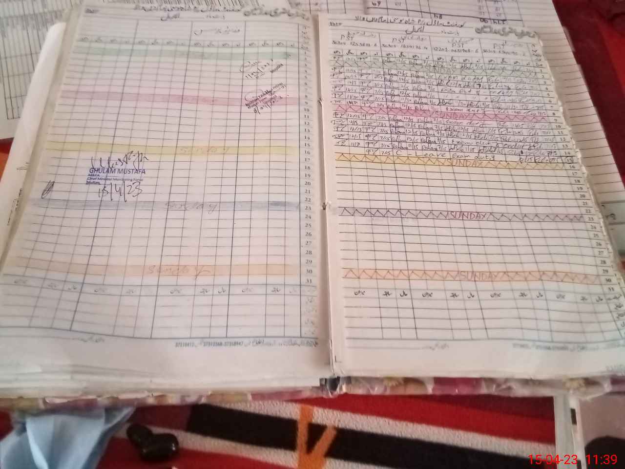 | CNIC | Full Name | Designation | R/C | Absence During Last Calender Month |