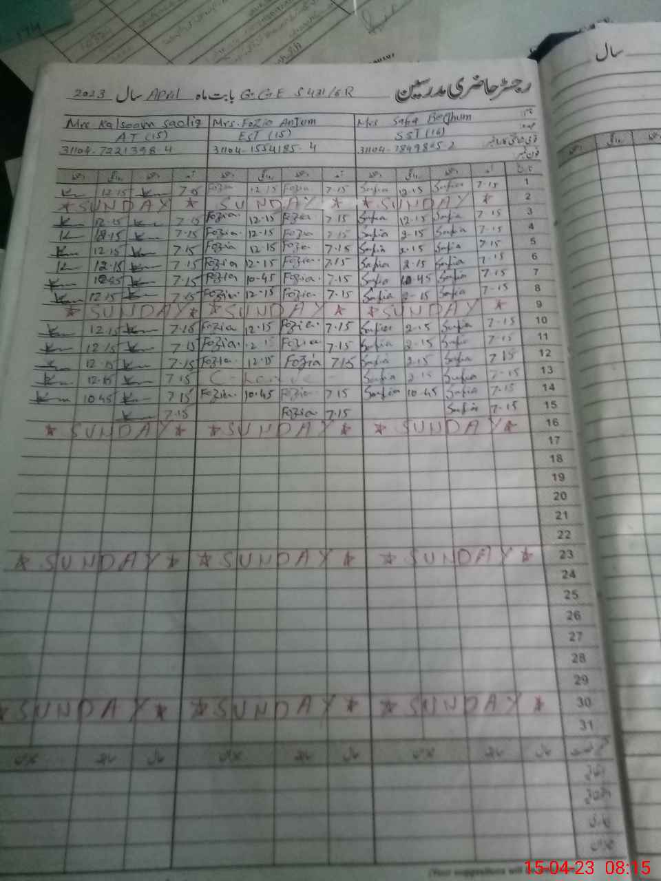 | 31**** | Sa**** Ma**** | PST | Regular | 31 | 0 | 0 | 31 | 0 | 0 | 0 | 0 | 0 | Maternity |