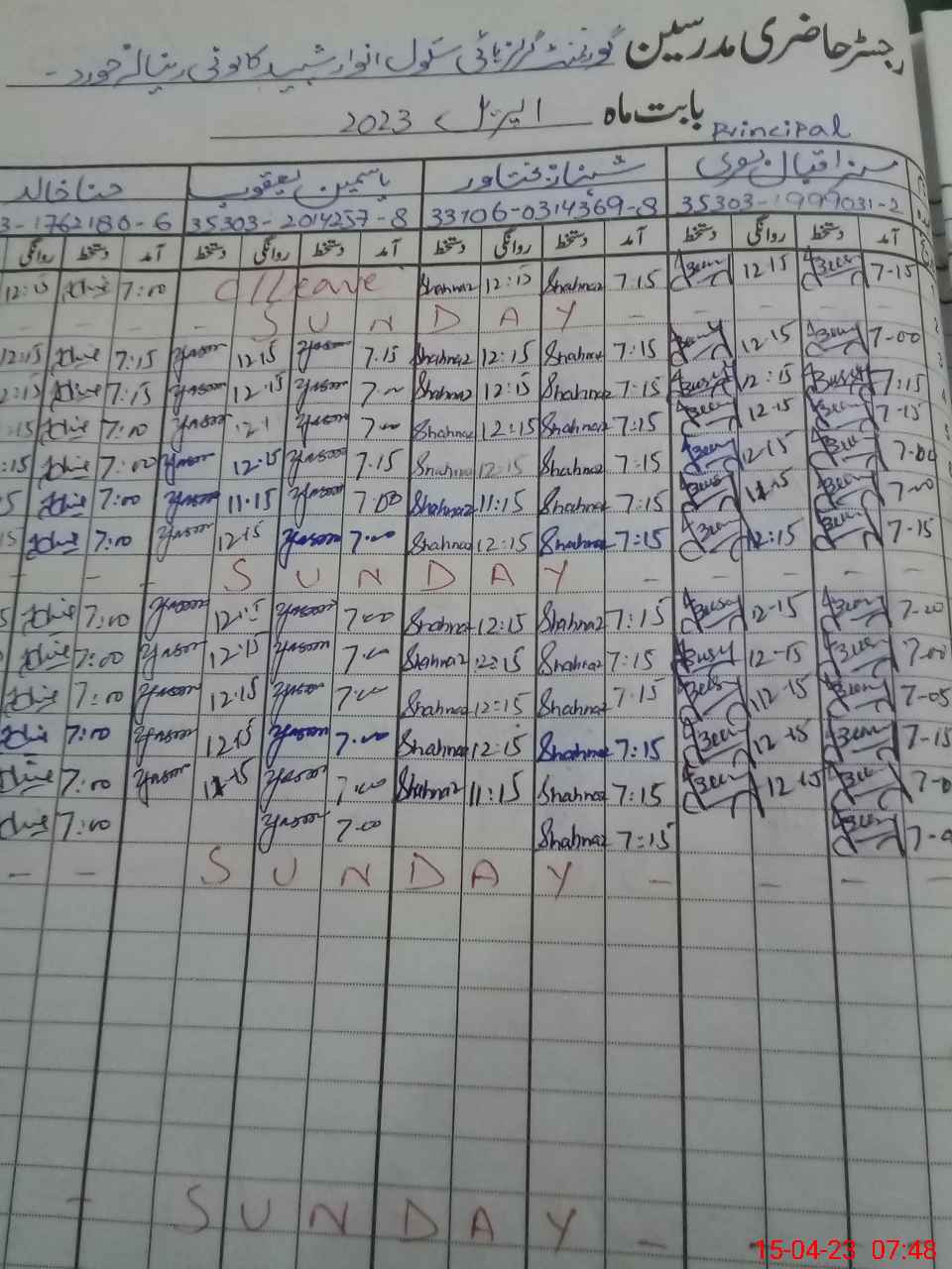 | CNIC | Full Name | Designation | R/C | Absence During Last Calender Month |
