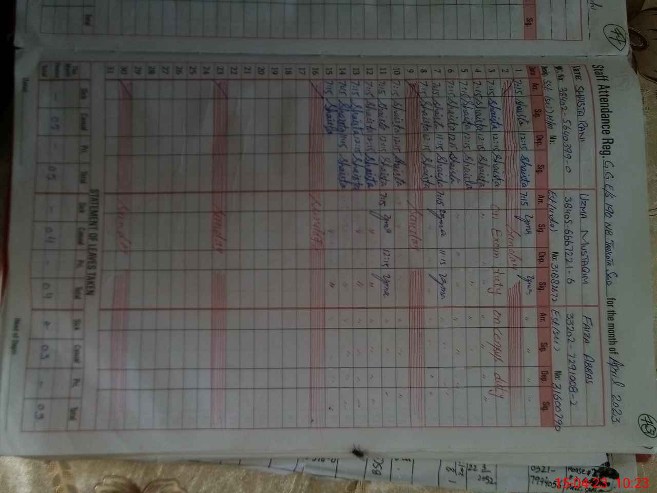| 38**** | Ar**** Bi**** Ra**** | PST | Regular | 31 | 0 | 0 | 31 | 0 | 0 | 0 | 0 | 0 | Maternity |
