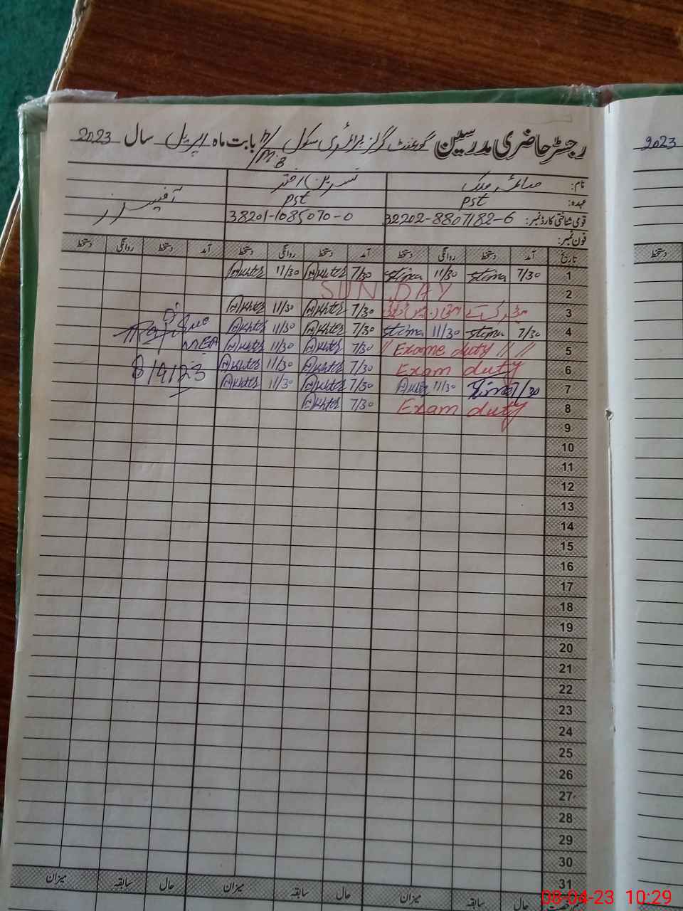 | 32**** | Sa**** Ma**** | PST | Regular | 0 | 0 | 0 | 0 | 0 | 0 | 0 | 0 | 0 | Exam Duty |