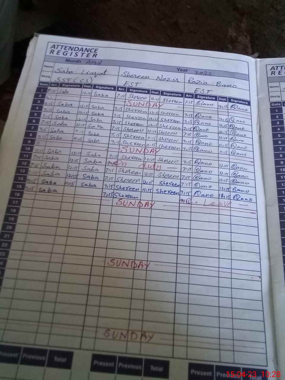 | 33**** | Ra**** Ba**** | EST | Regular | 0 | 0 | 0 | 0 | 0 | 0 | 0 | 0 | 0 | Absent (Un-Authorized) |