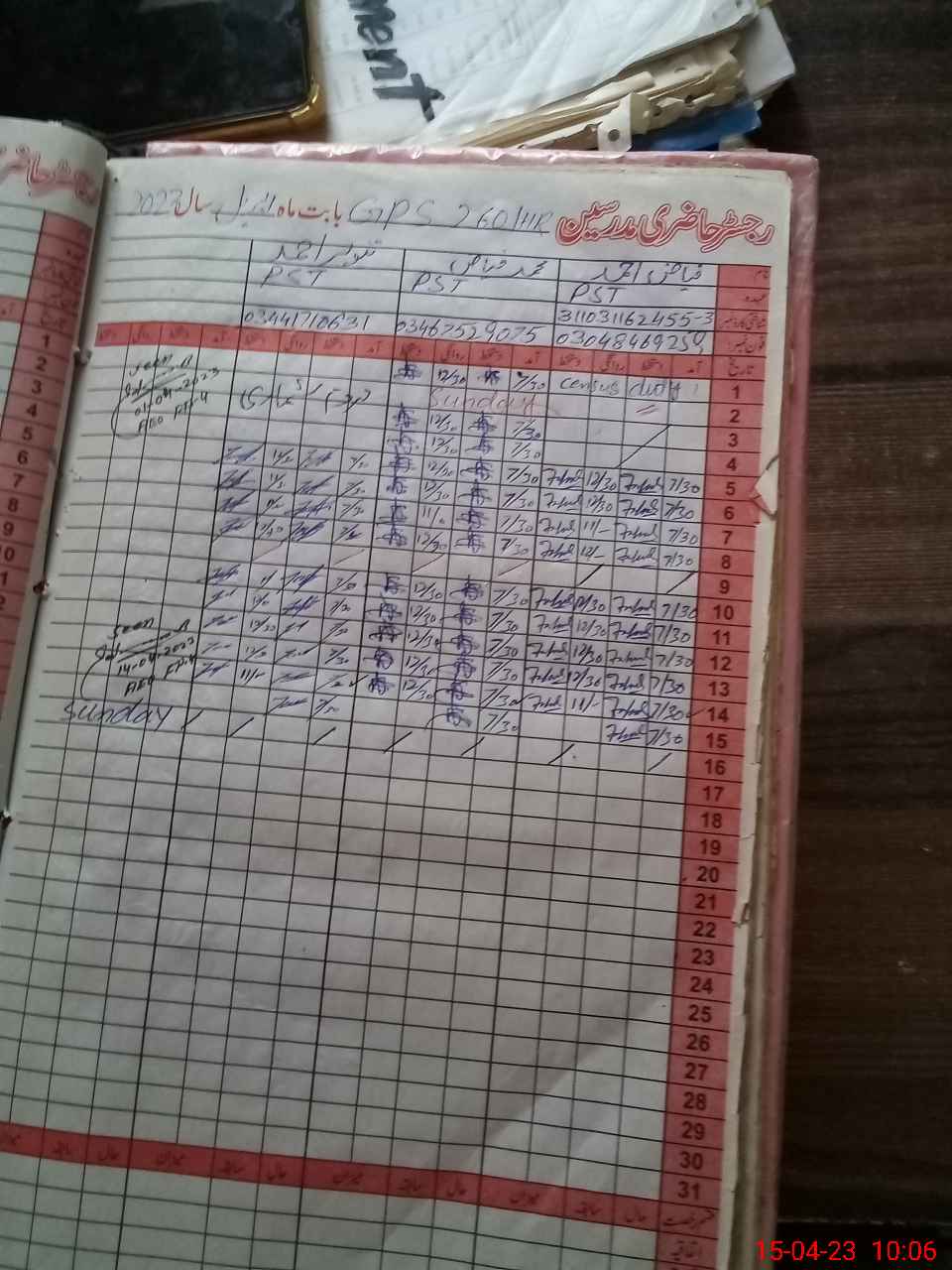 | CNIC | Full Name | Designation | R/C | Absence During Last Calender Month |