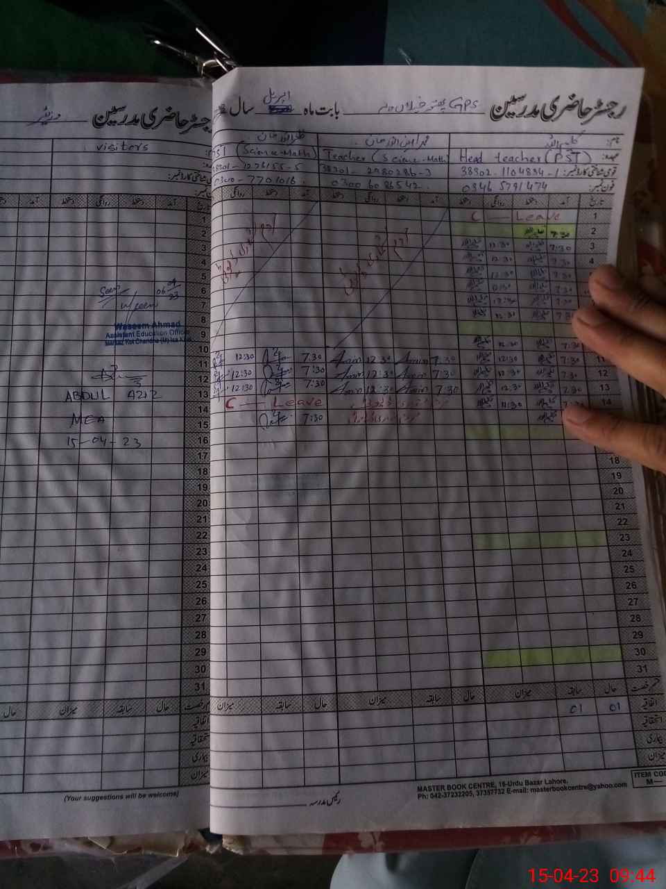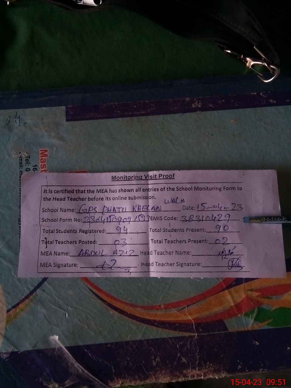| Attendance Register | Head Teacher | MEA with School | Visit Proof |
