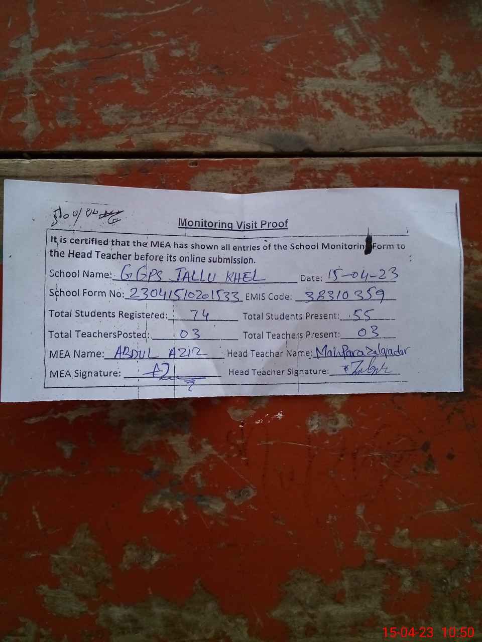 | EMIS Code: 38310359 | Name of School: GGPS JALLU KHEL | |||