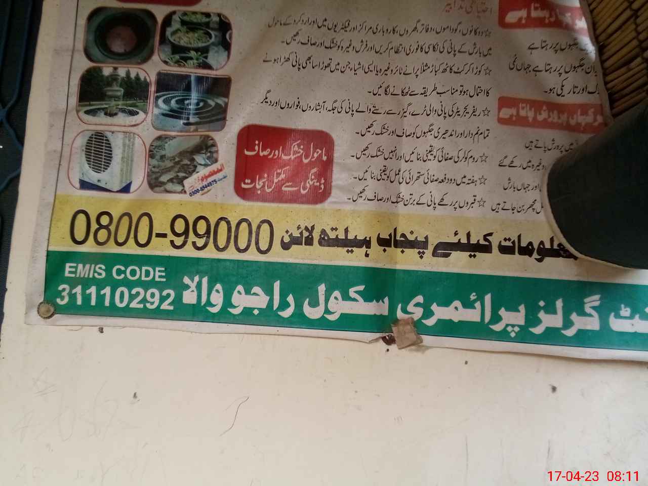 | EMIS Code: 31110292 | Name of School: GGPS RAJU WALA | |||