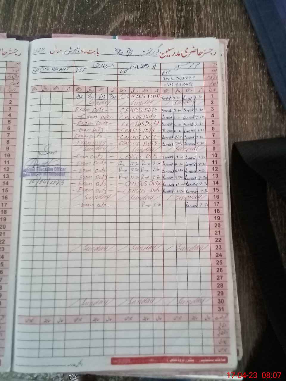 | 31**** | Al**** Ra**** | PST | Regular | 0 | 0 | 0 | 0 | 0 | 0 | 0 | 0 | 0 | Exam Duty |