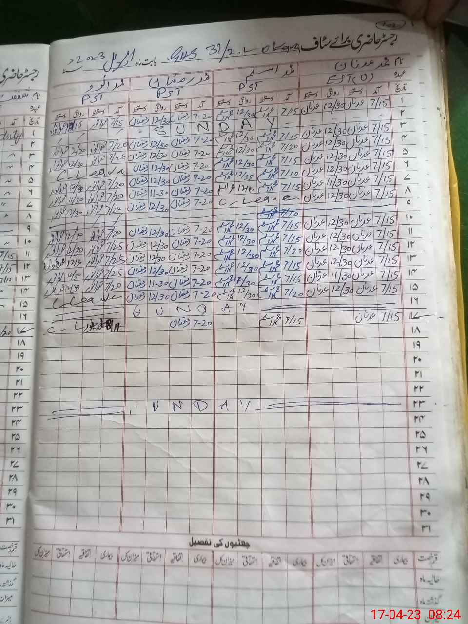 | CNIC | Full Name | Designation | R/C | Absence During Last Calender Month |
